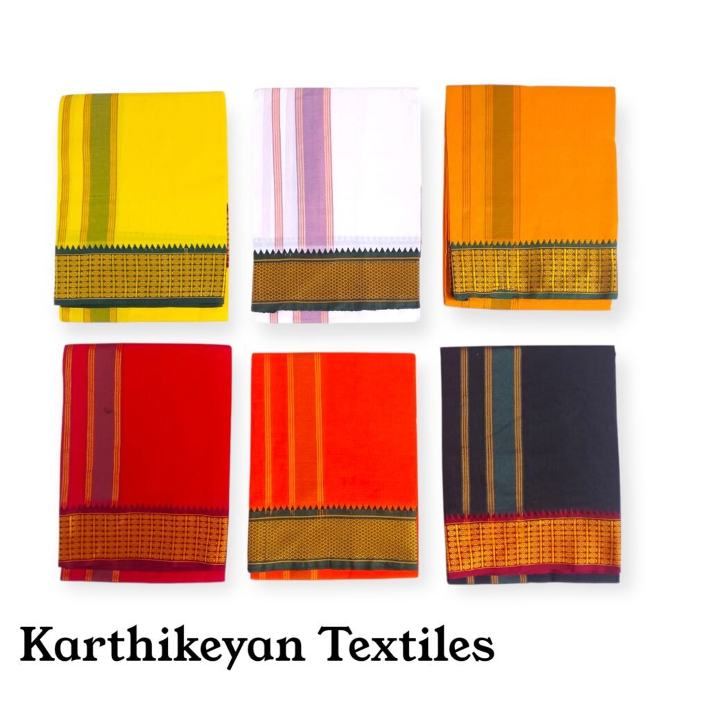 Enhance your ethnic style with our vibrant color dhoti and angavastram set. Crafted from premium fabric, it features elegant borders, perfect for festive occasions and traditional celebrations, blending comfort with timeless charm.