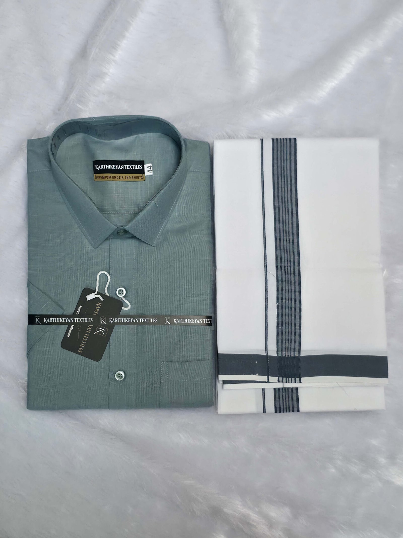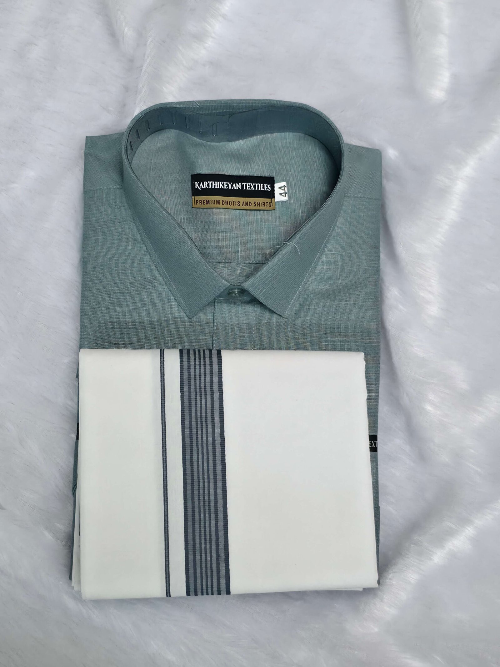 Cotton Shirt & Dhoti Matching Combo Set – Bluish Grey
