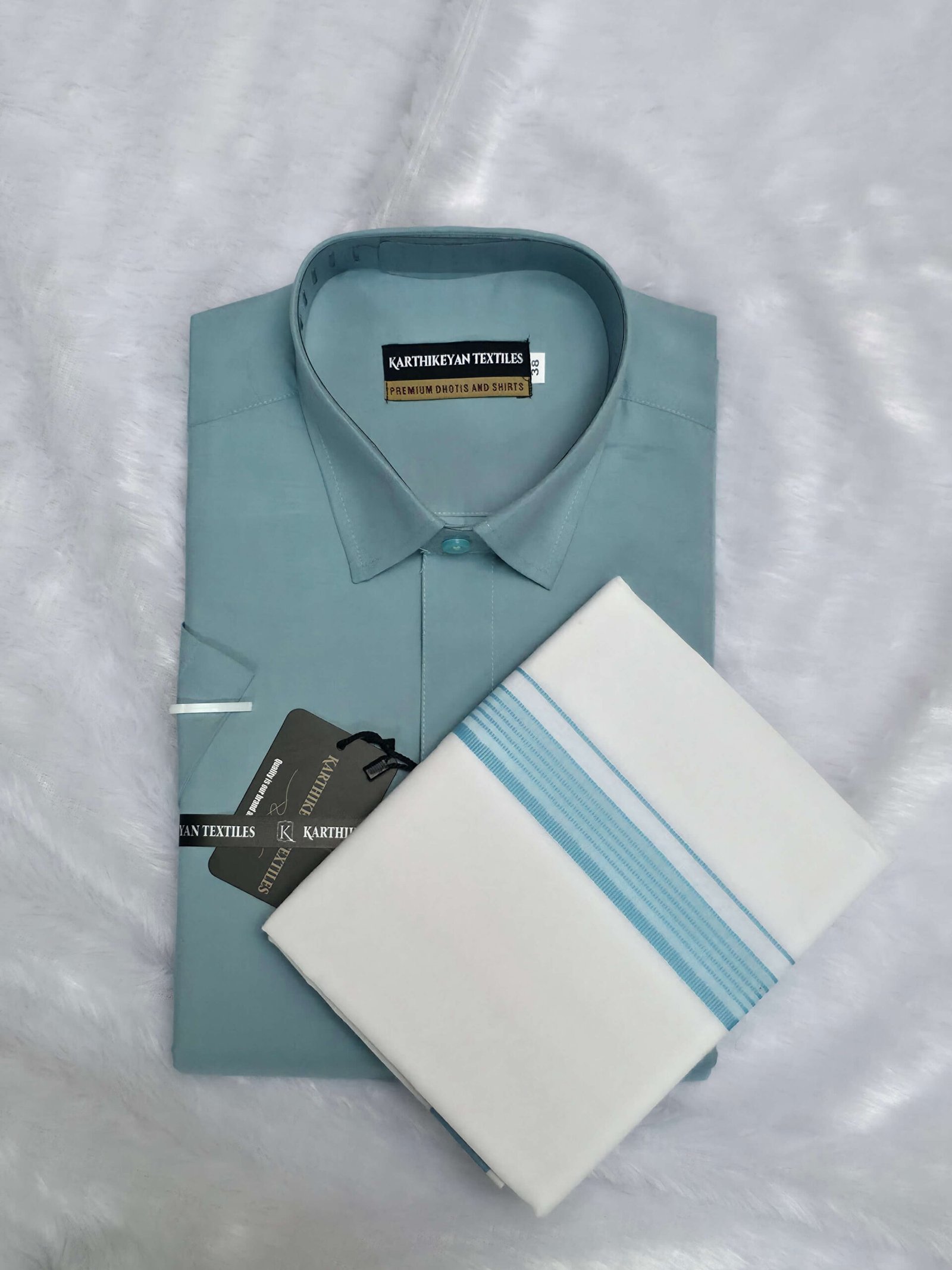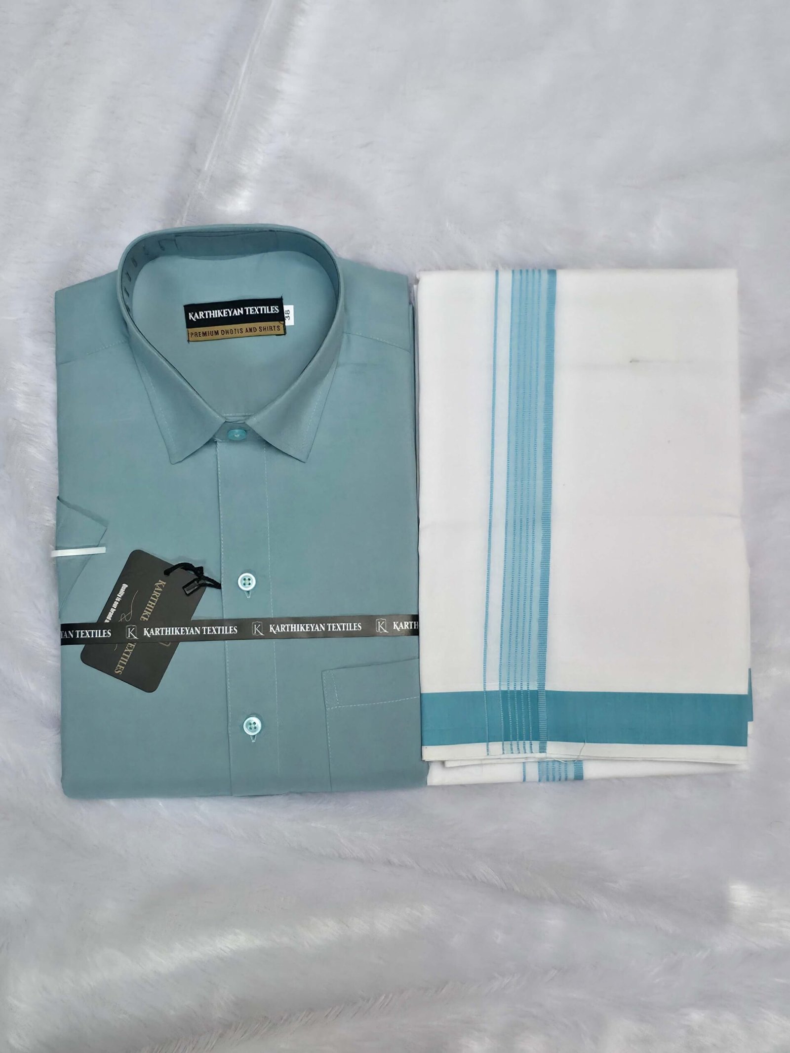 Cotton Shirt & Dhoti Matching Combo Set – French Green