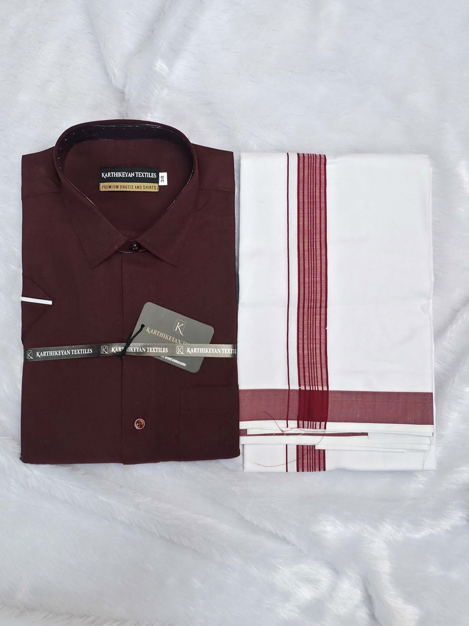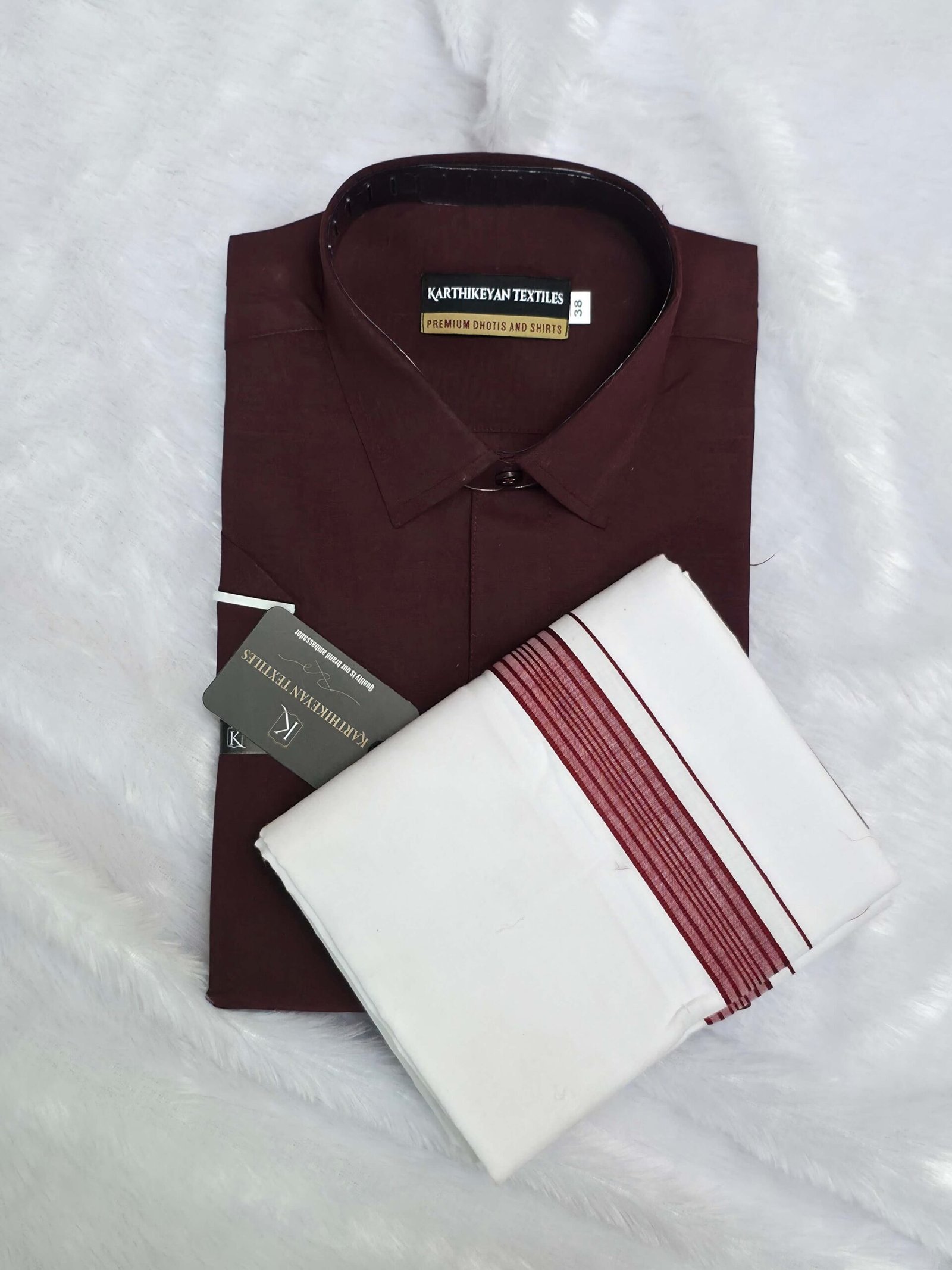 Cotton Shirt & Dhoti Matching Combo Set – Maroon