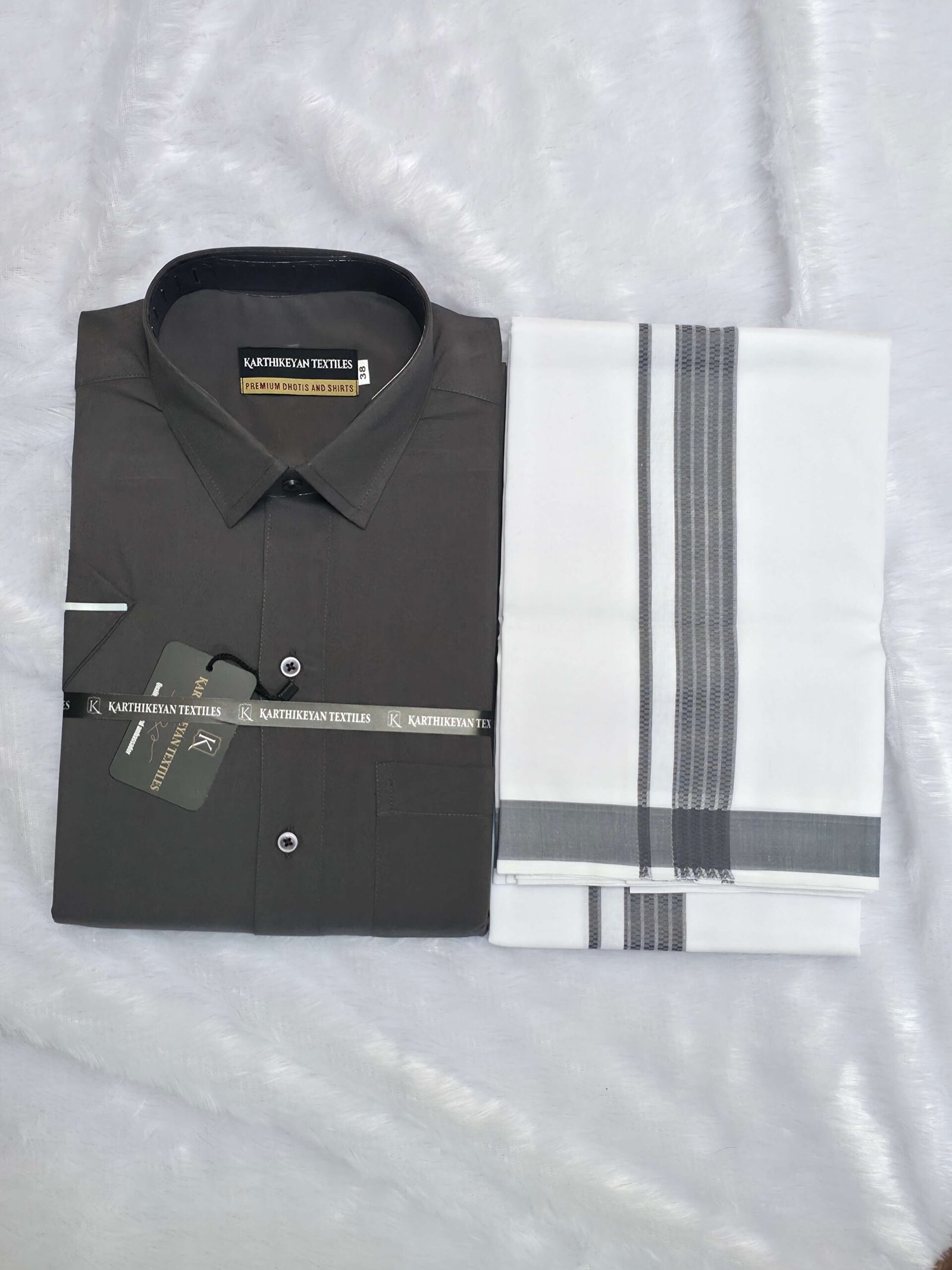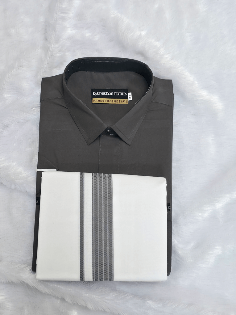 Cotton Shirt & Dhoti Matching Combo Set – Steel Grey