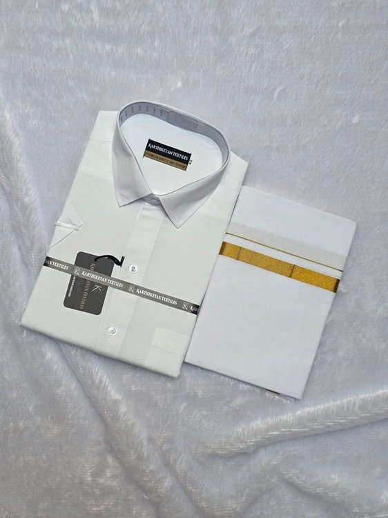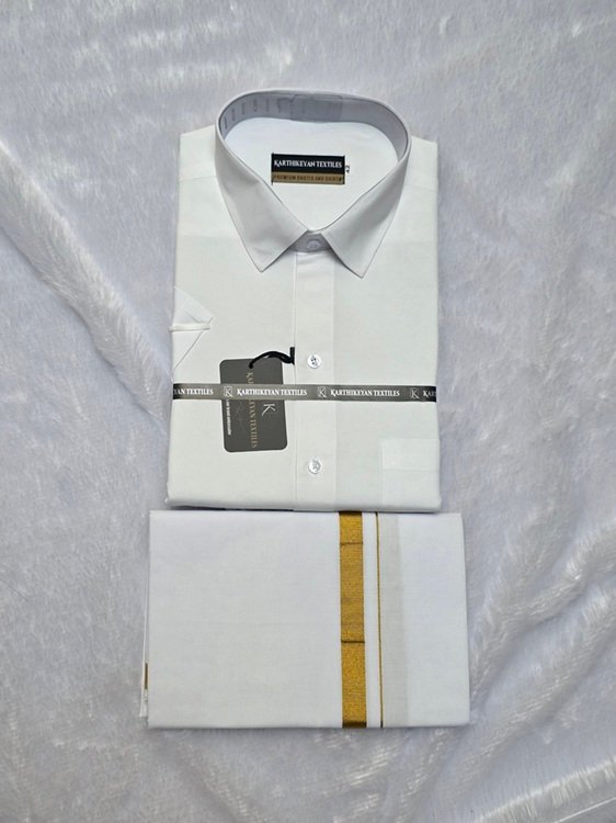 Cotton Shirt & Dhoti Matching Combo Set – White
