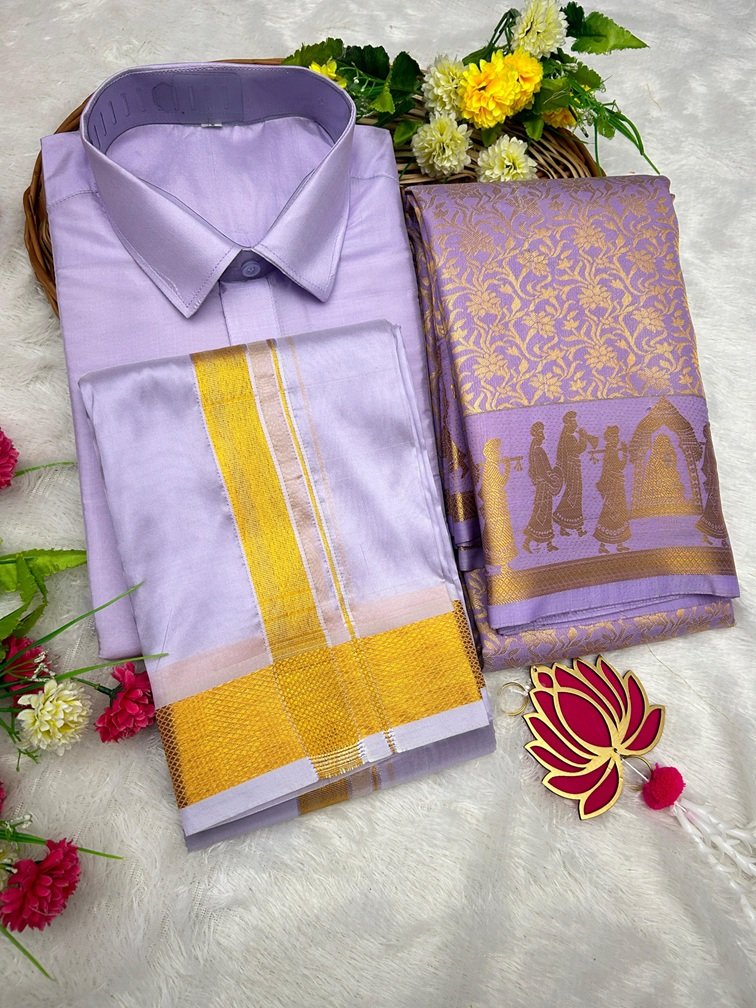Style: Shirt, Dhoti and Saree | Material: Art Silk (Couple Combo)