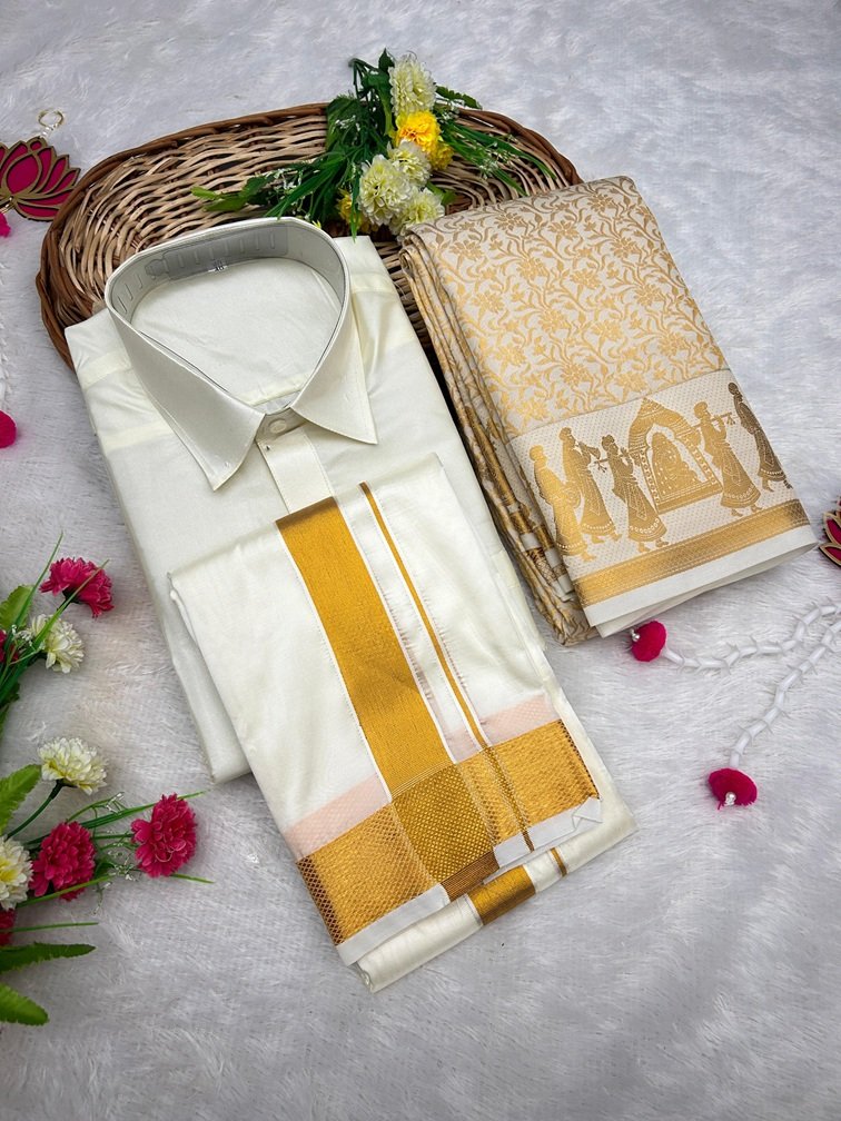 Style: Shirt, Dhoti and Saree | Material: Art Silk (Couple Combo)