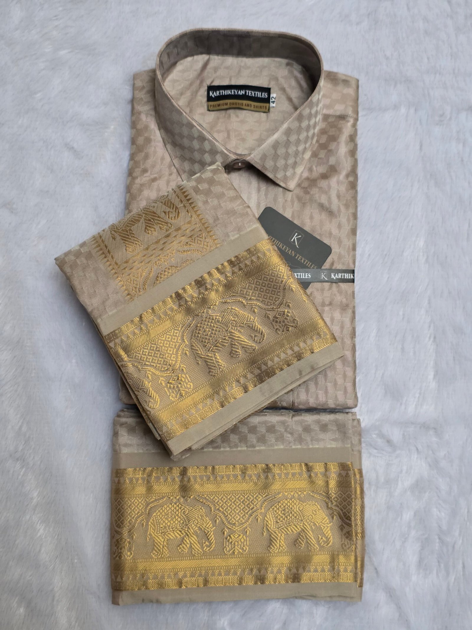 Style: Shirt, Dhoti & Towel| Material: Tissue