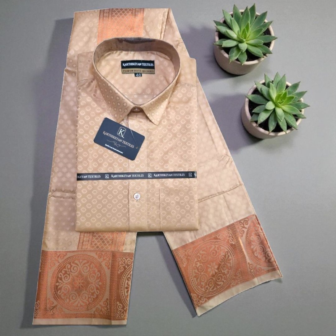 Upgrade your ethnic wardrobe with our men’s embossed art silk shirt and dhoti combo. Luxurious texture and unmatched comfort make it perfect for weddings, festivals, and special celebrations.