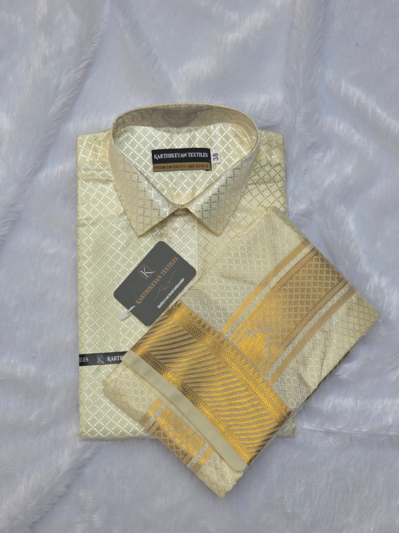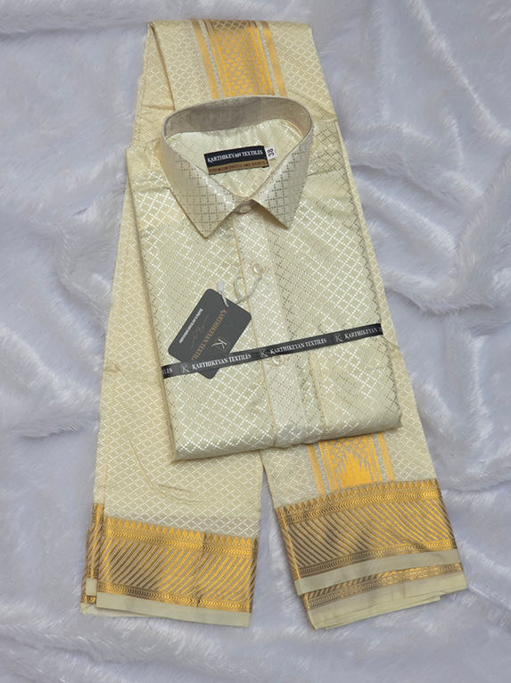 Mens Art Semi Silk Jaquard – Premium Embossed Combo (Cream)