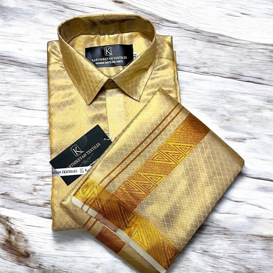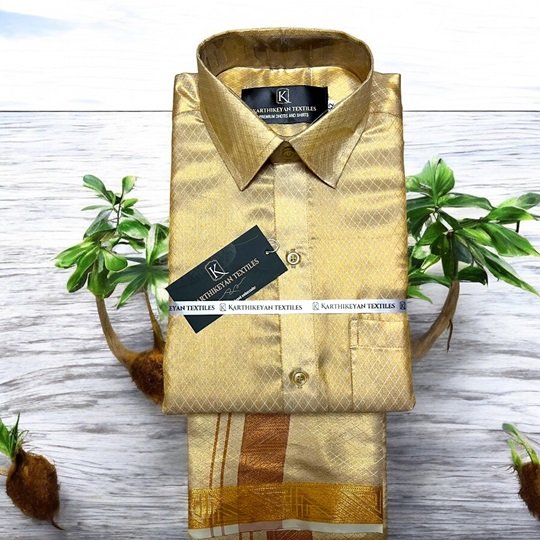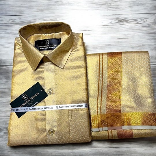 Upgrade your ethnic wardrobe with our men’s embossed Tissue silk shirt and dhoti combo. Luxurious texture, elegant design, and unmatched comfort make it perfect for weddings, festivals, and special celebrations.