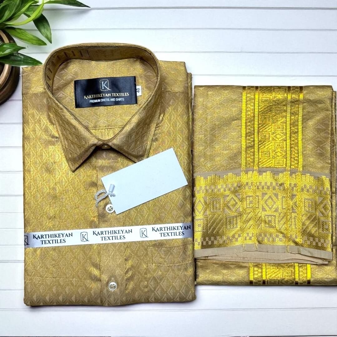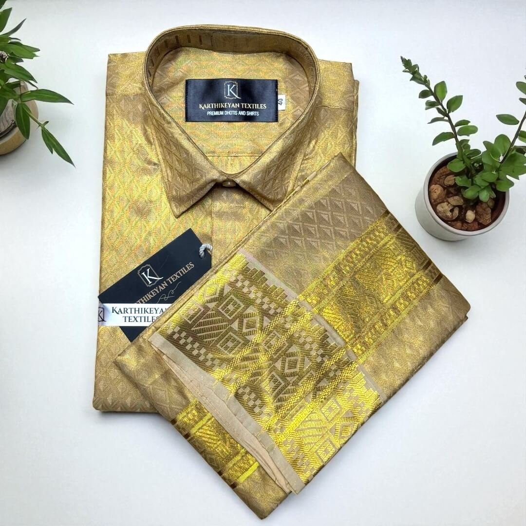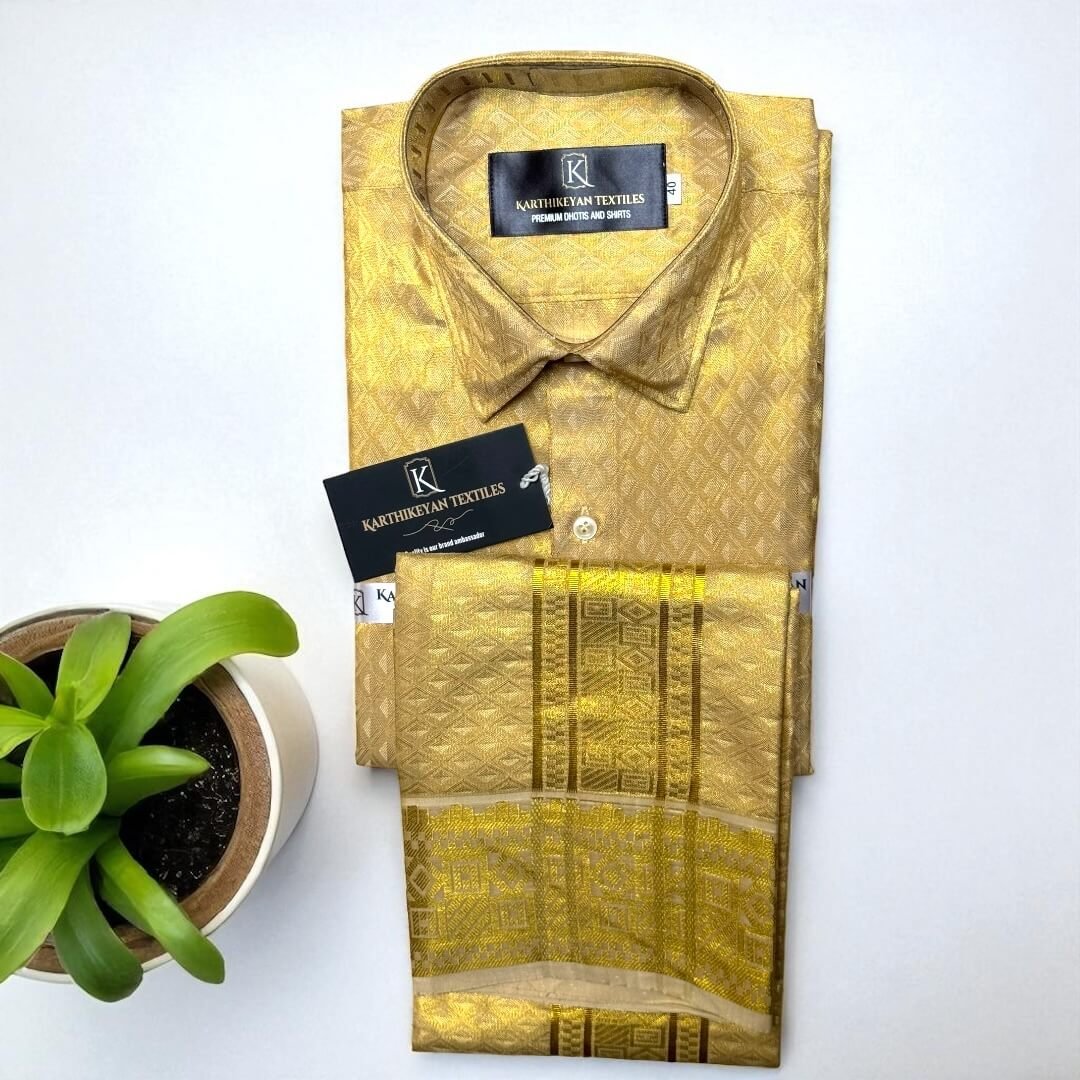 Mens Tissue Silk jacquard Golden Jari Combo