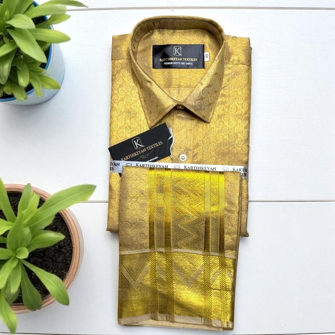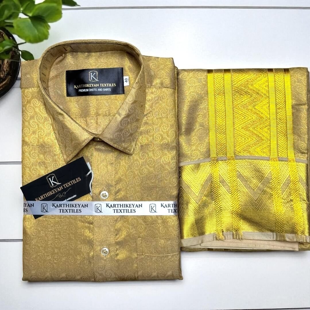Mens Tissue Silk jacquard Golden Jari Combo