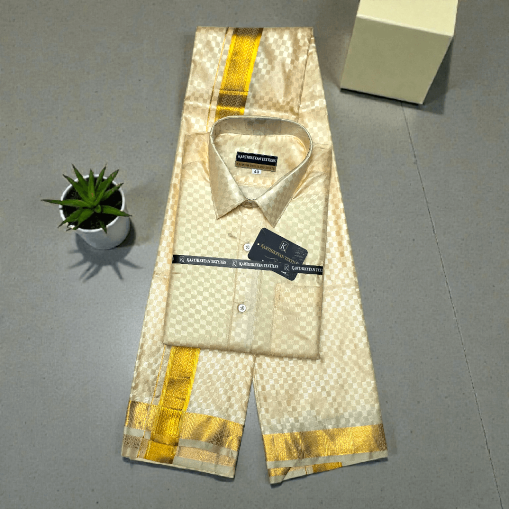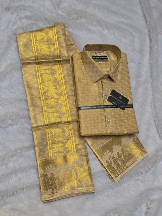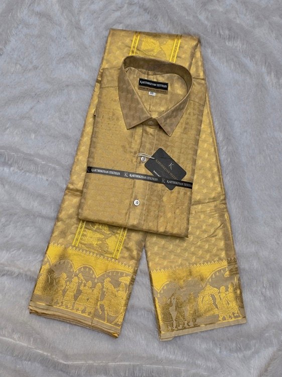 Mens Tissue Silk jacquard Golden Jari Combo