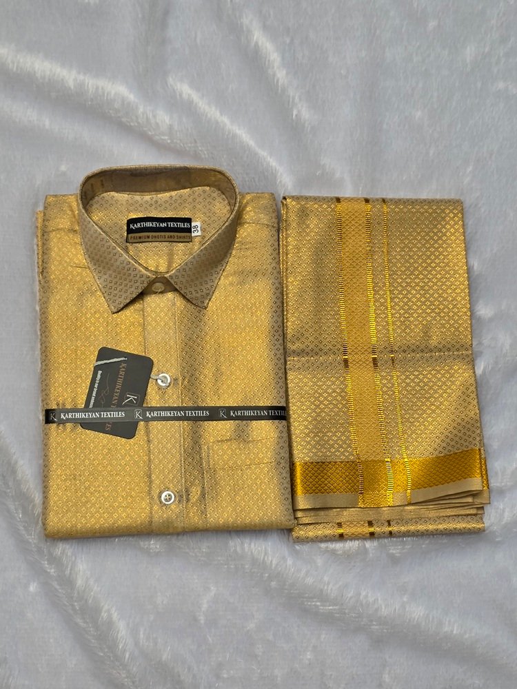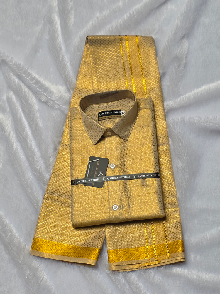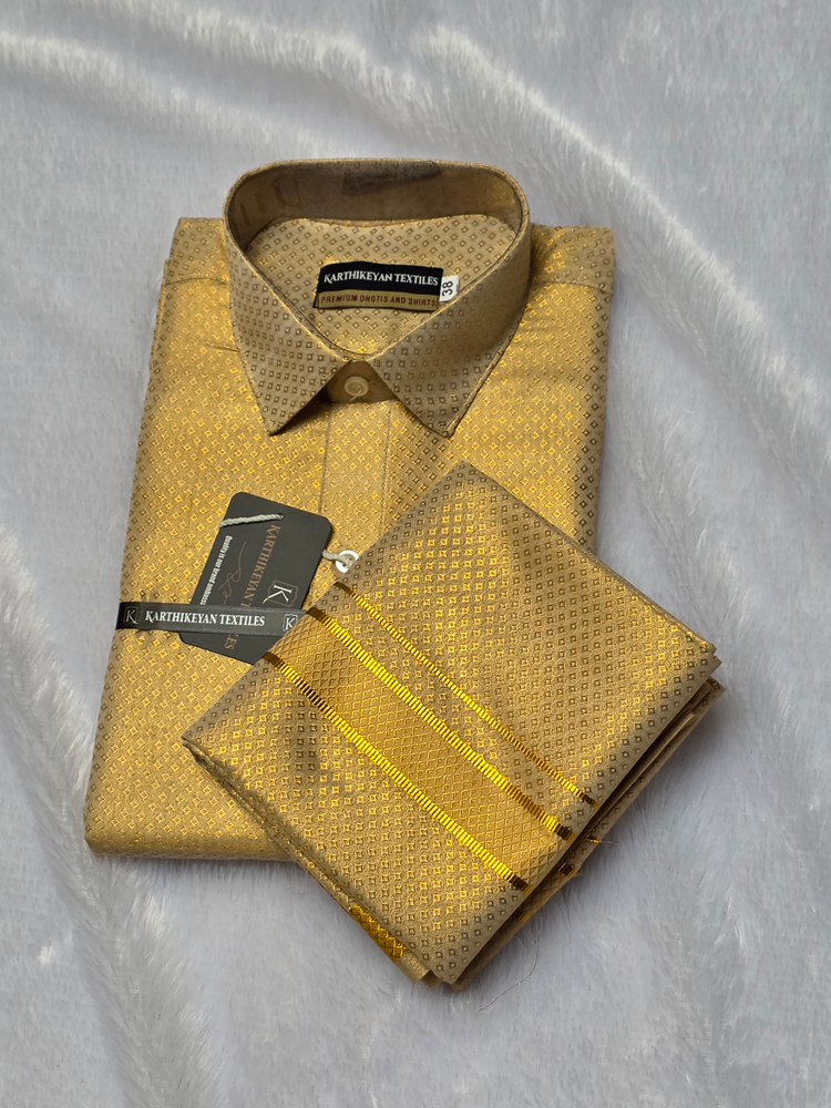 Mens Tissue Full Jari Shirt and Dhoti Combo – Diamond