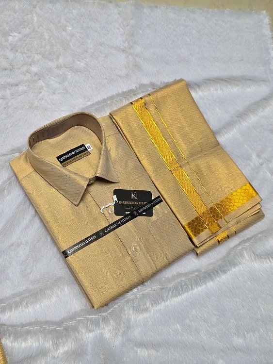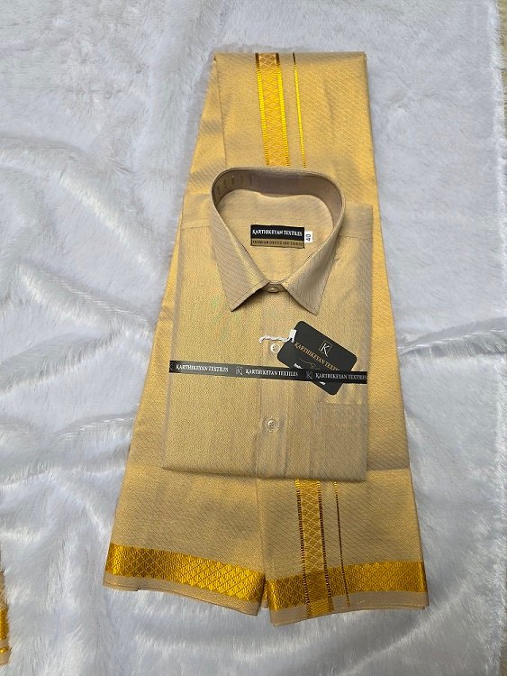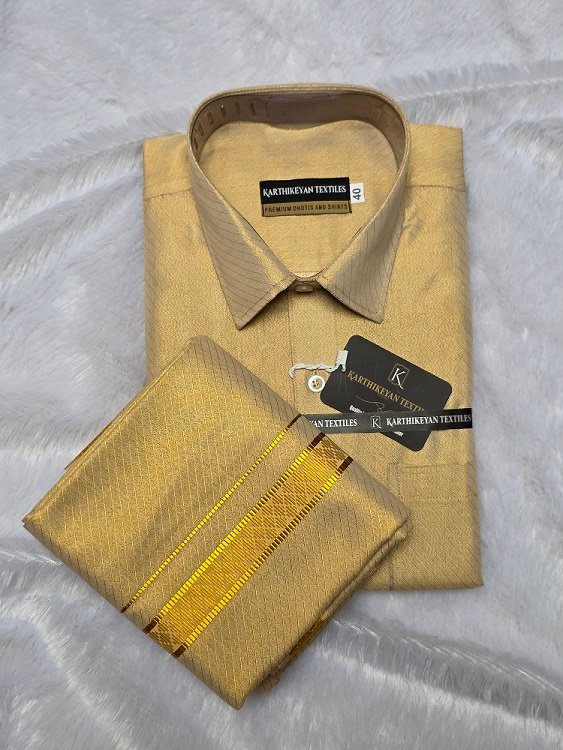 Mens Tissue Full Jari Shirt and Dhoti Combo – Cross line