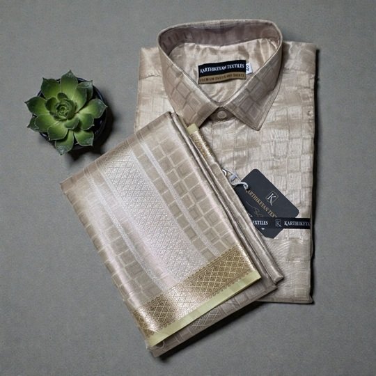 Tissue Silk Sandstone Square Dhoti & Shirt Combo