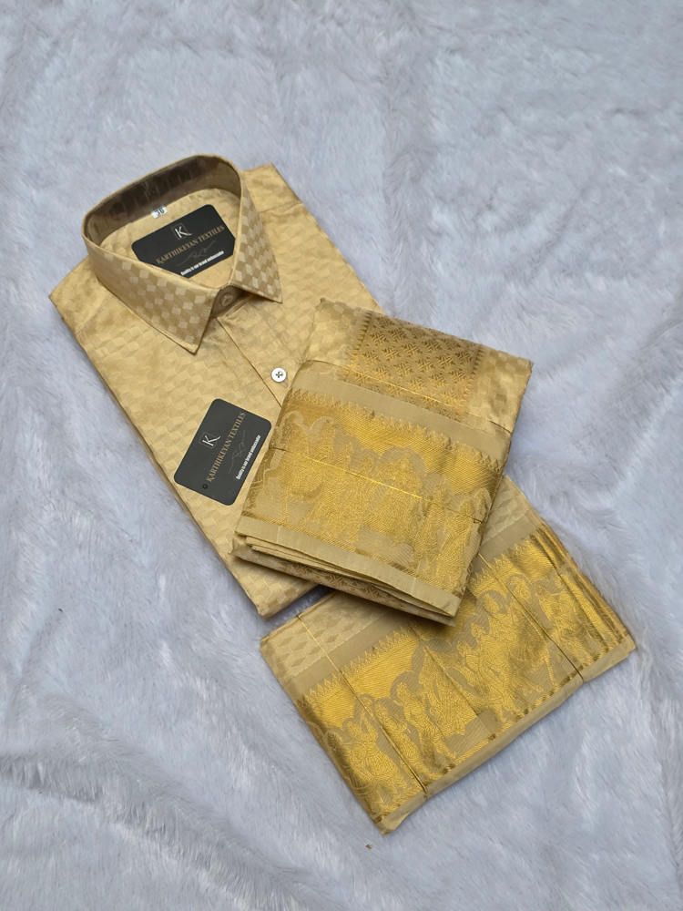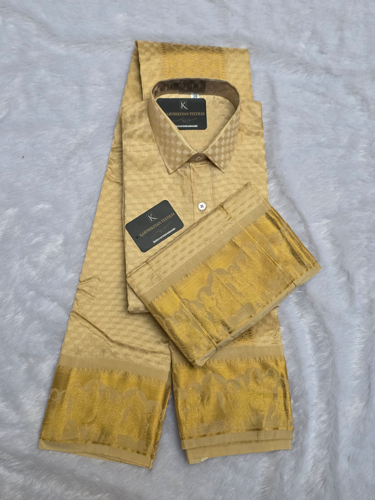 Style: Shirt, Dhoti & Towel| Material: Tissue