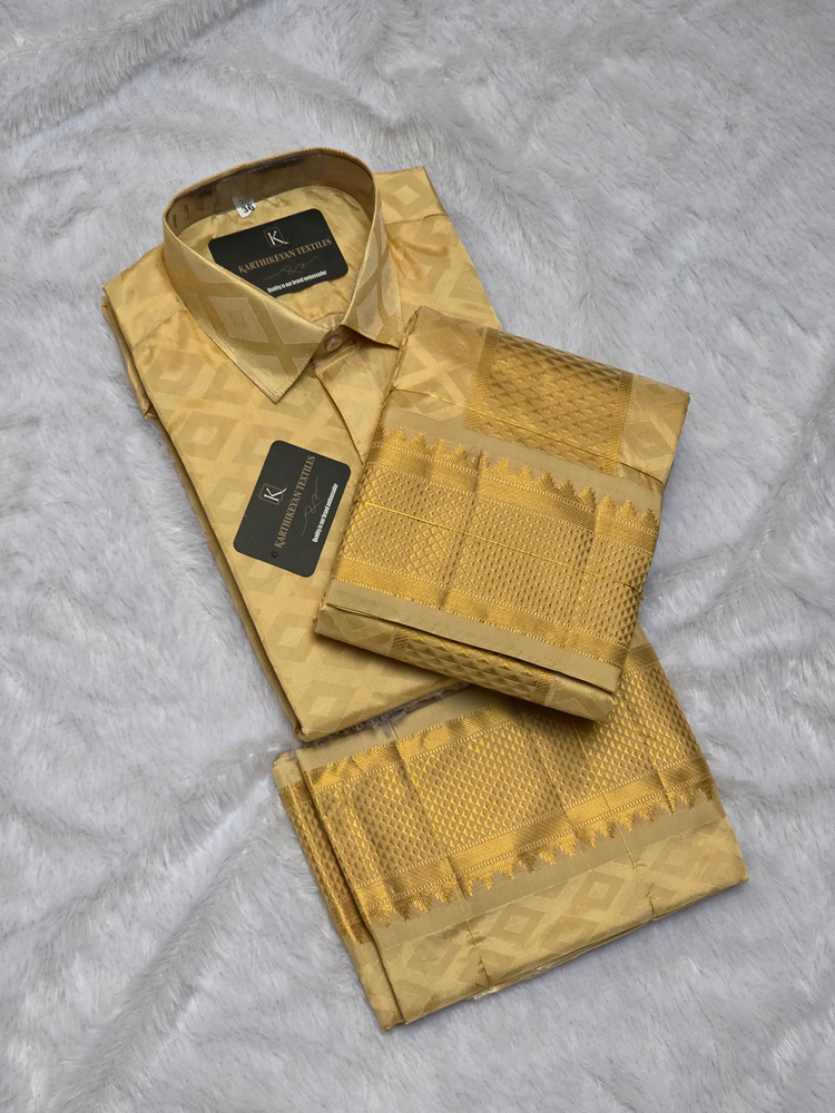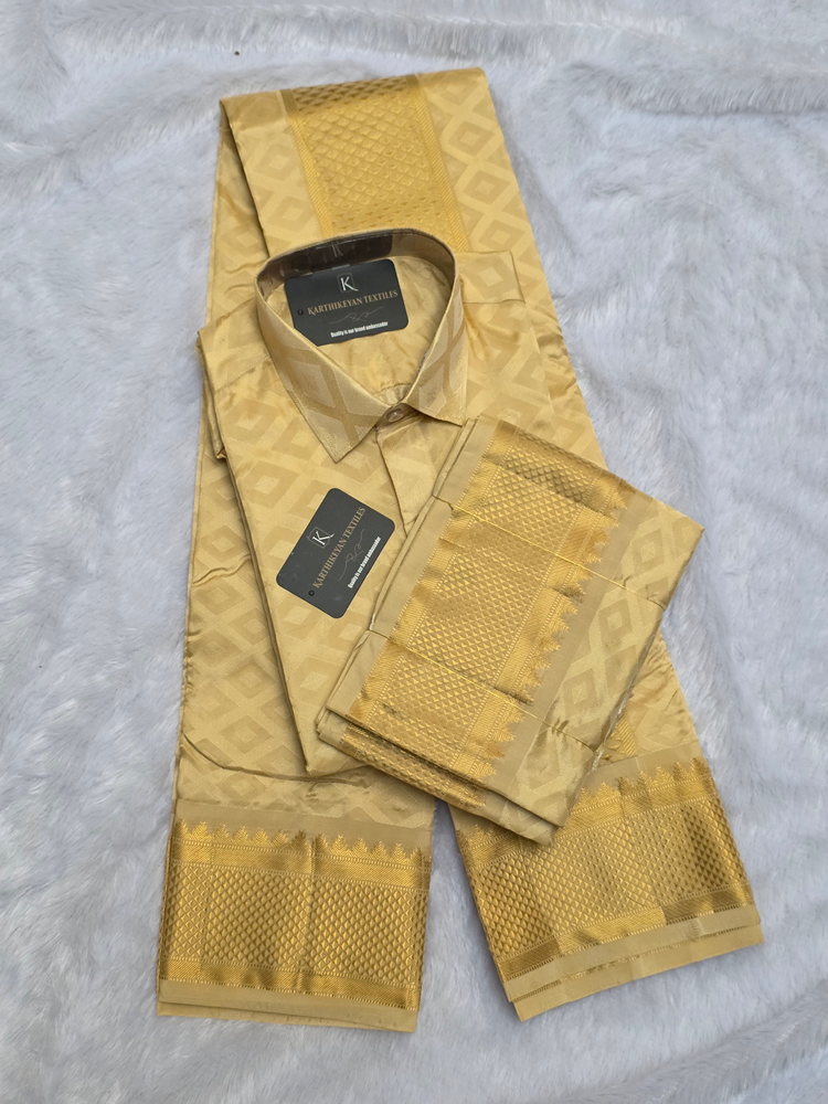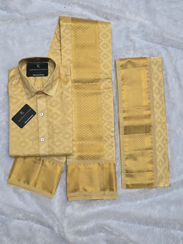 Style: Shirt, Dhoti & Towel| Material: Tissue