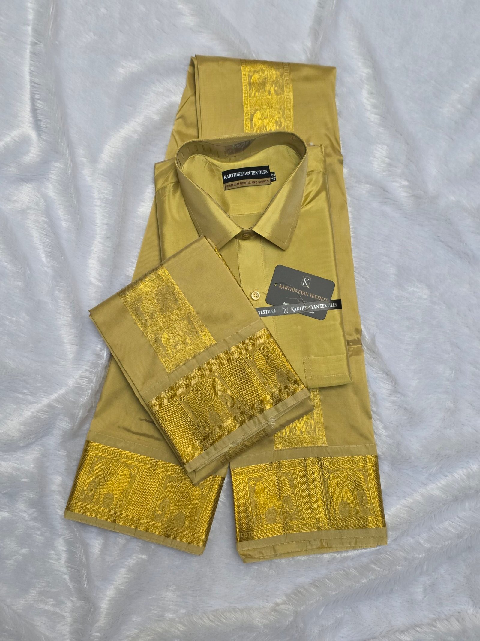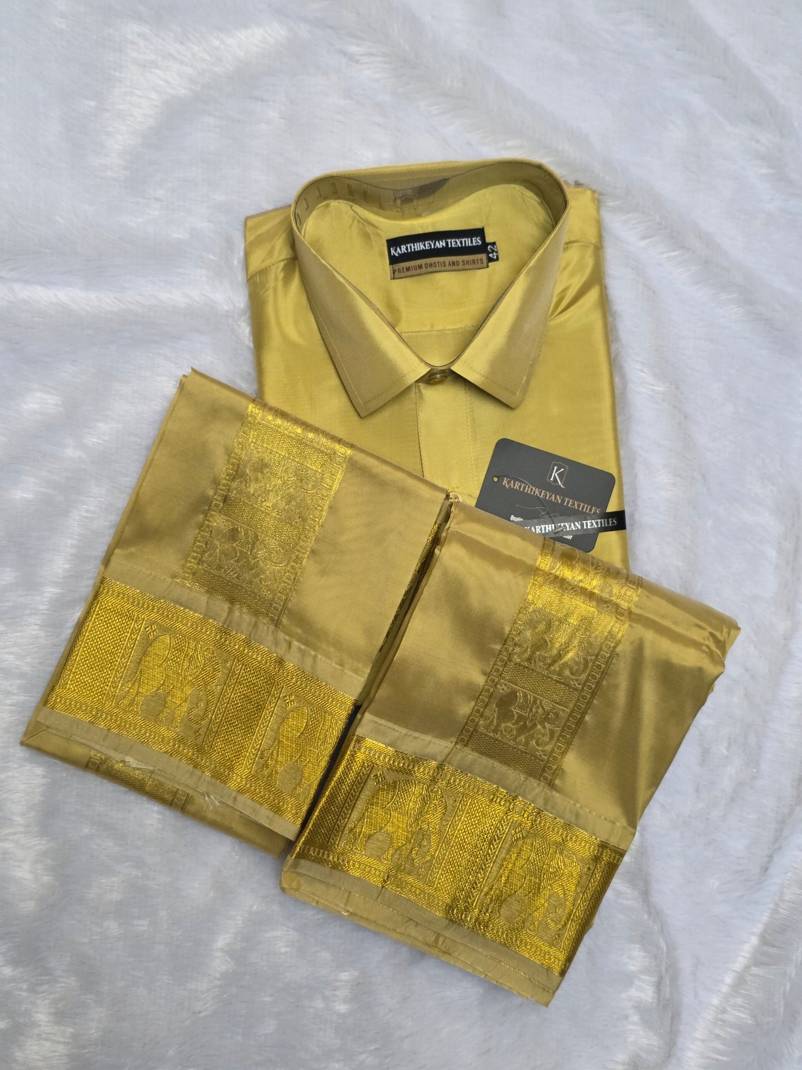 Style: Shirt, Dhoti & Towel| Material: Tissue