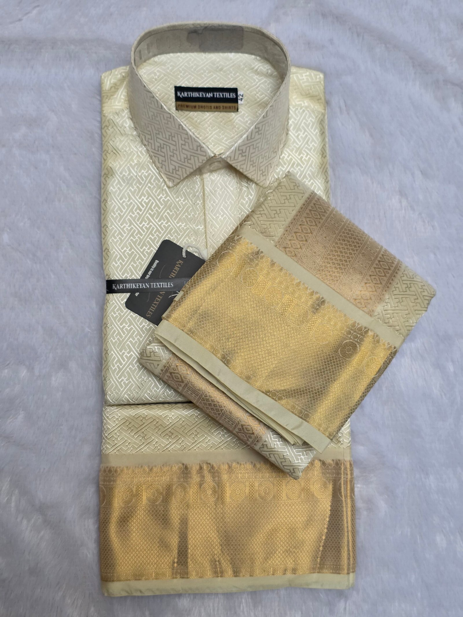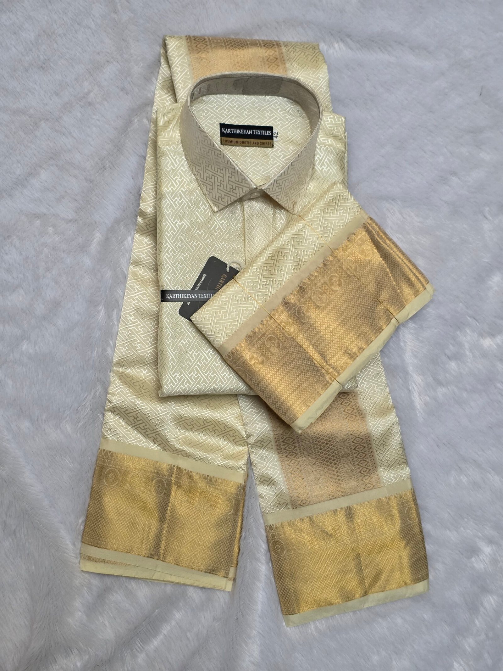 Style: Shirt, Dhoti & Towel| Material: Tissue
